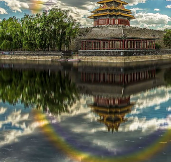 夜幕下的中式建筑景观