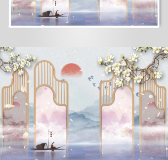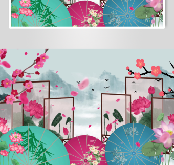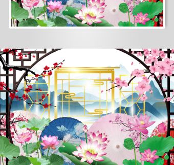 中式梦幻典雅屏风插画