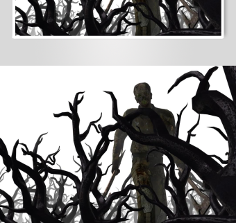 阴森枯树下的神秘雕像