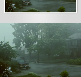 暴雨中的庭院景象