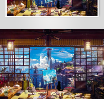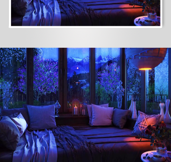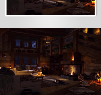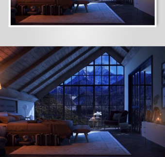 温馨阁楼夜景室内空间