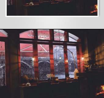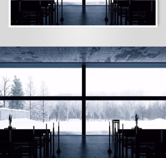 冬日教堂内景窗外雪景