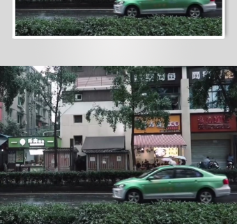 城市街道中的绿色出租车