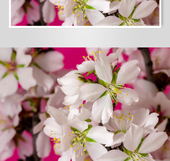粉背景下的白色绽放花枝