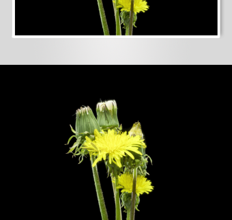 黄色小花绽放于黑背景