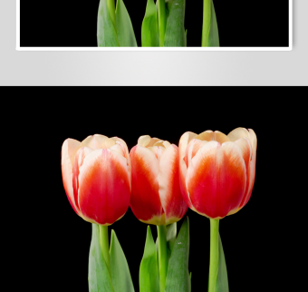 三朵红白相间美丽郁金香