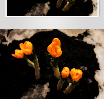橙色番红花绽放于黑土