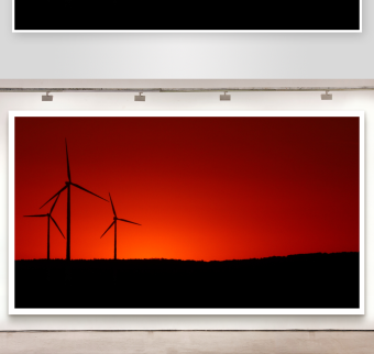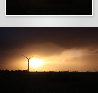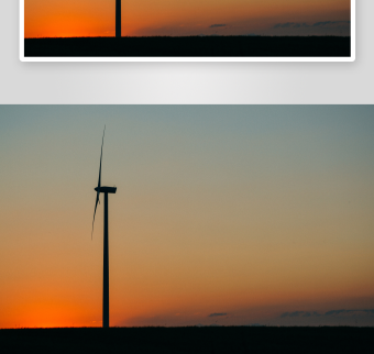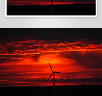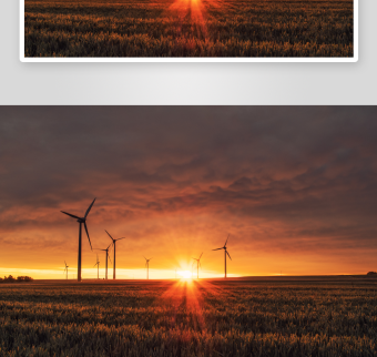 日落黄昏下的风力涡轮发电机实拍视频