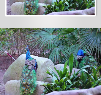 岩石边开屏的美丽孔雀