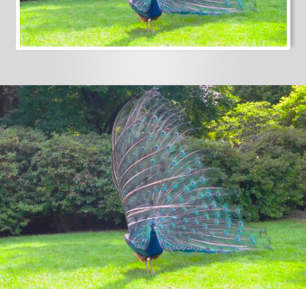 开屏孔雀于绿意盎然草地